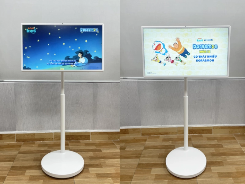 • Thiết kế di động và linh hoạt: với thiết kế chân đế có bánh xe, màn hình có thể di chuyển đi đến bất cứ nơi đâu, từ phòng này sang phòng khác, từ địa điểm này đến địa điểm khác, phù hợp cho cả công việc và giải trí.