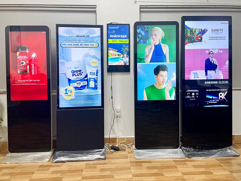 Màn hình quảng cáo LCD chân đứng hay còn gọi là Standee điện tử, là loại màn hình được thiết kế dành riêng cho chức năng quảng cáo, có chân đế để đứng, thường dùng để ở các lối đi hoặc sảnh chờ, nơi có nhiều người tập trung, qua lại, nhằm mục đích quảng bá những thông tin cần thiết đến các khách hàng tiềm năng.